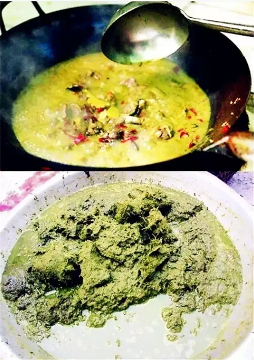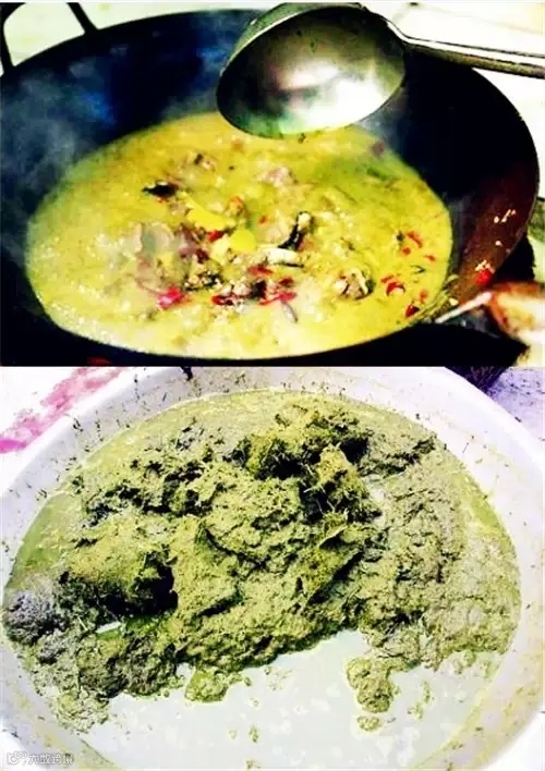 给你们感受个重口味的,牛瘪火锅,产自贵州,做法就是给牛吃中药材,然后把牛一刀干掉,从肠子里掏出没消化干净的粑粑,挤出其中的液体,然后加入牛胆汁,小火慢炖,做火锅吃,色香味俱全,只可意会不能言传……