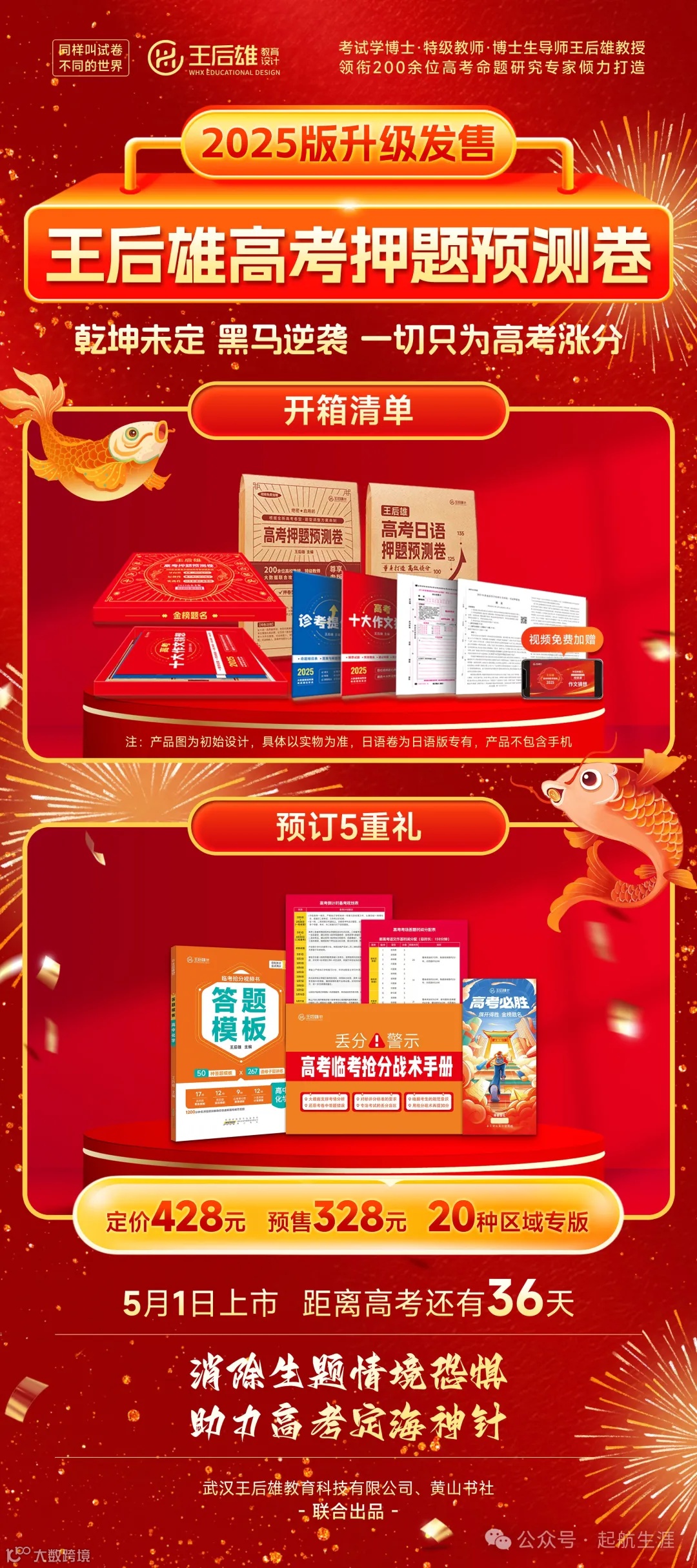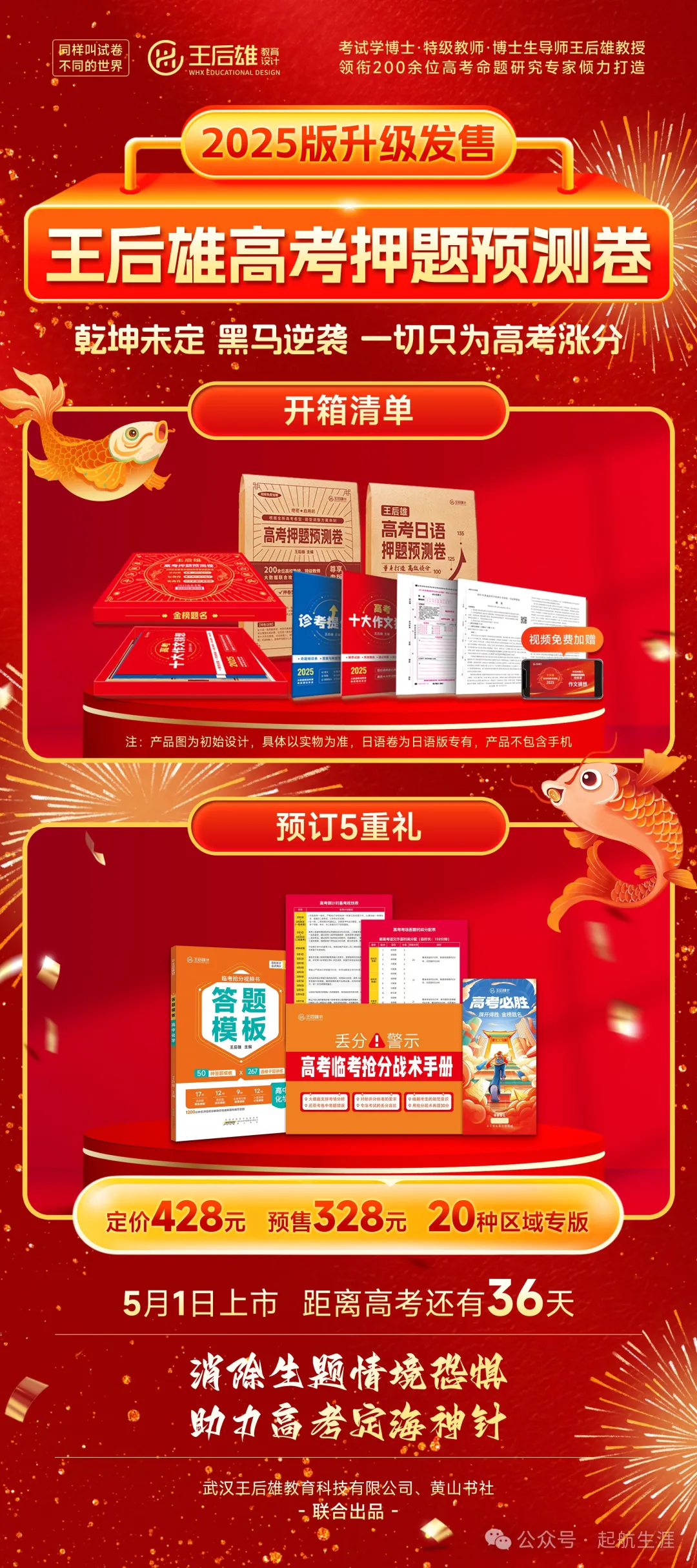 高考冲刺的号角已经吹响,你准备好了吗?2025版王后雄高考押题卷正式开始预售!精准押题,直击考点,助你轻松拿下高分!