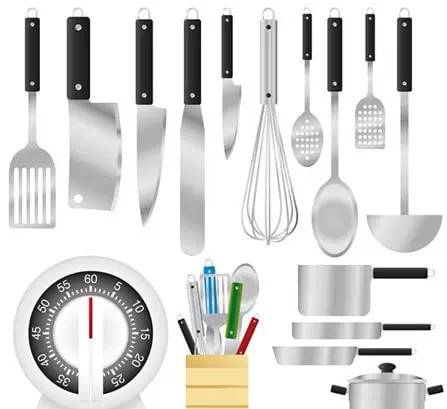 德国人每家每户都有许多不同大小的锅,盆。煎肉排,煮土豆,煮汤,煮菜汁,等等,不同的饭菜用不同的锅。德国主妇在厨房里不是做饭,简直就是做化学实验,温度计、量杯、滴管、天平、计时器一应俱全;食材,不论果、蔬、肉、骨,撕、拉、拔、削、剁;形状,不计方、条、圆、扁、片、块、丝、角,德国主妇们都有一定的专属工具,目的就是要人省时省力。