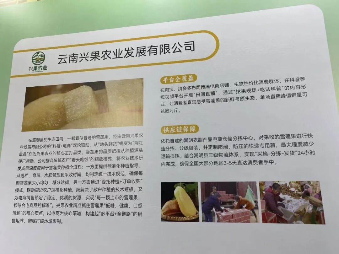 5. 云南兴果农业雪莲果:嵩明优势果蔬品类,以“脆甜多汁、生态种植”为核心卖点,契合商超、社区团购渠道需求;
