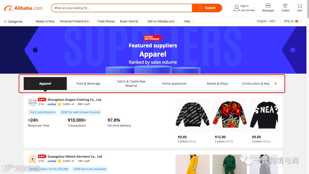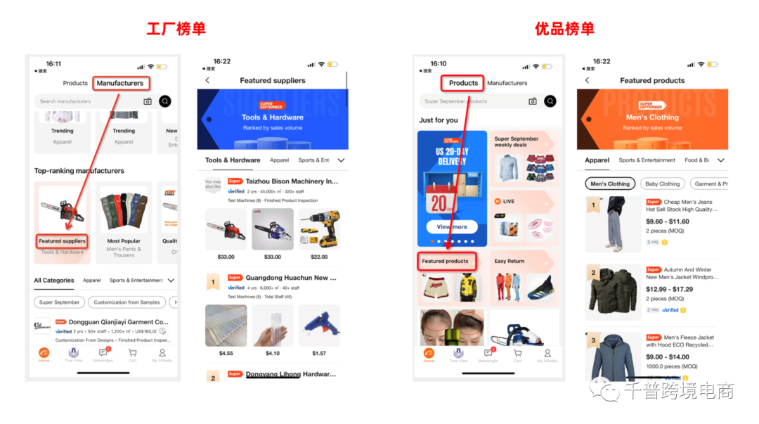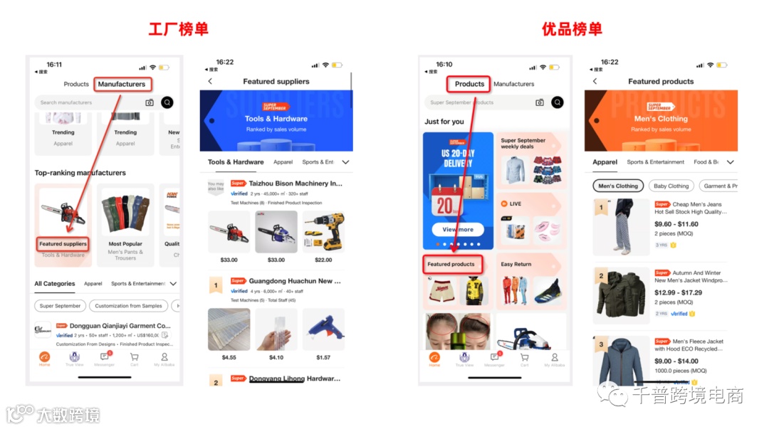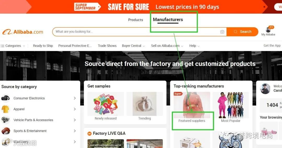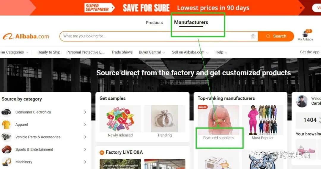 www.alibaba.com首页这个位置;点Manufacturers,然后再点Featured suppliers板块就可以进入了。