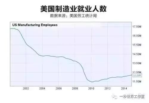2000年以来,美国制造业就业人数总体呈下降趋势。