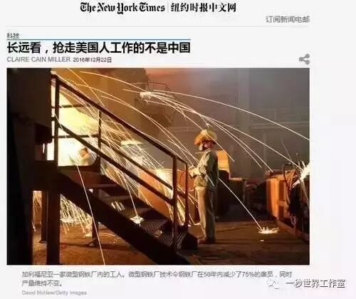 即使机器人应用也无法彻底扭转趋势。机器人的大量运用可以让部分制造业留在或者回归美国,但不可能持久。再从就业的角度看,机器人的使用更是只会减少工作岗位,而不会增加美国就业。《纽约时报》报道写道:特朗普告诉从事制造业的工人们,通过严格限制贸易、离岸外包与移民,他会为他们带回工作,但经济学家说,更大的威胁来自另一件事--自动化。