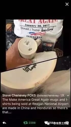 特朗普阵营竞选所用的部分杯子和T恤产自中国和洪都拉斯。