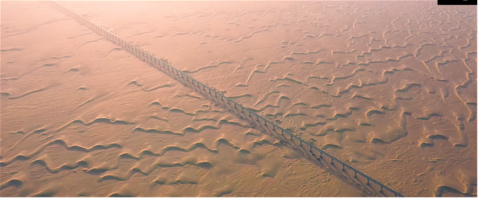 1、5座风沙桥采取“以桥代路”输沙理念治理沙害,不仅保证了线路的安全,疏导风沙,还减少了施工对现场的破坏,保护了自然生态。