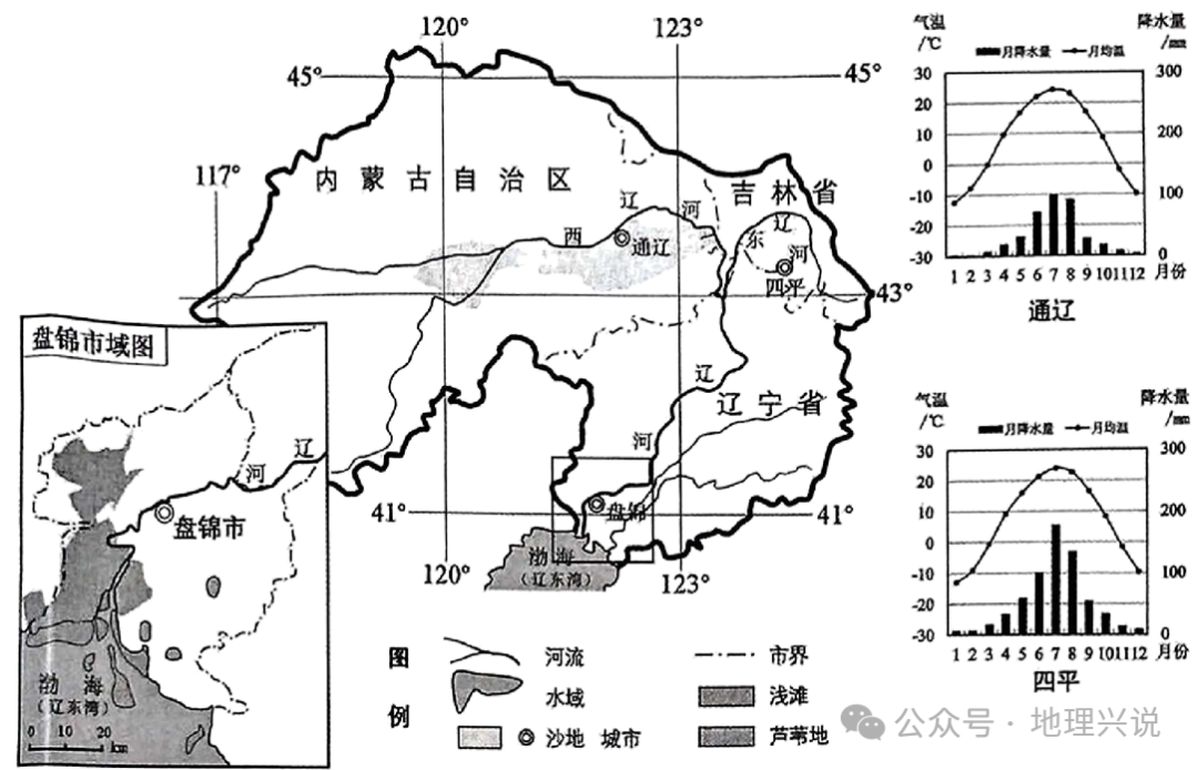 【详解】(1)水文特征主要包括河流径流量、河流水位季节变化、汛期长短、结冰期、含沙量等方面。据两地气温降水图可知,西辽河年降水量更少,补给河流水量更小,所以河流流量更小;由于西辽河年降水量更少,植被覆盖率更低,植被保持水土能力较差,所以含沙量更大。
