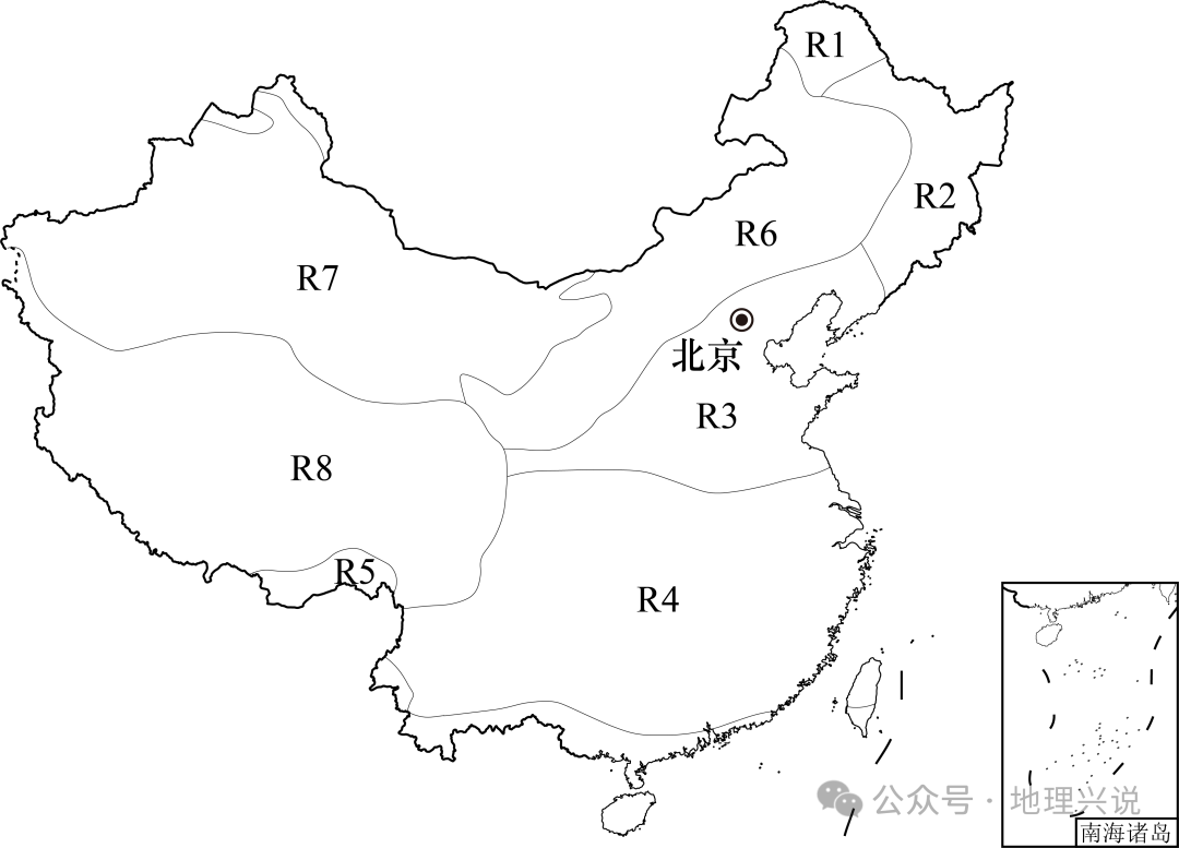 2.结合所学知识,R6为我国温带草原区,结合图表信息分析,丁地草地面积比例最大,与R6植被类型最相符,D正确,ABC错。故选D。