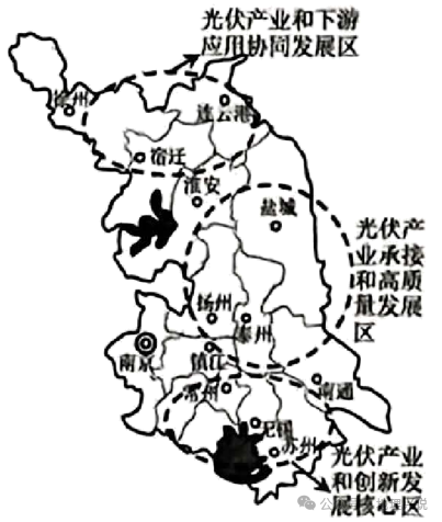 【点睛】我国地面大型电站主要分布在西北地区的荒漠戈壁,东部人口密集,多为分布式光伏的领地。光伏产业主要聚集分布在两个地区,一是产业链完备及具备先发优势的江苏、浙江、安徽等华东地区,形成了以长三角为主的电池组件制造基地;二是中西部地区,一方面是大型风光基地建设地,主要为前沿内蒙古、青海、宁夏等西北地区,另一方面是靠近上游原料产地和绿电资源丰富的四川、云南等西南地区,作为原材料的主要供应基地。