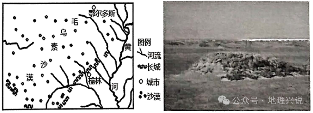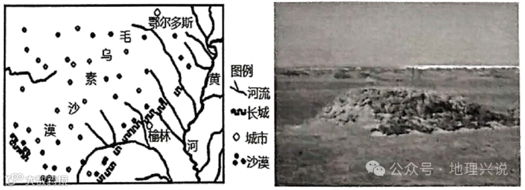 “肥岛效应”是指干旱半干旱地区的灌丛下方土壤养分富集,导致肥力高于周边地带的现象。读毛乌素沙地及南缘灌丛沙丘景观图,完成下面小题。
