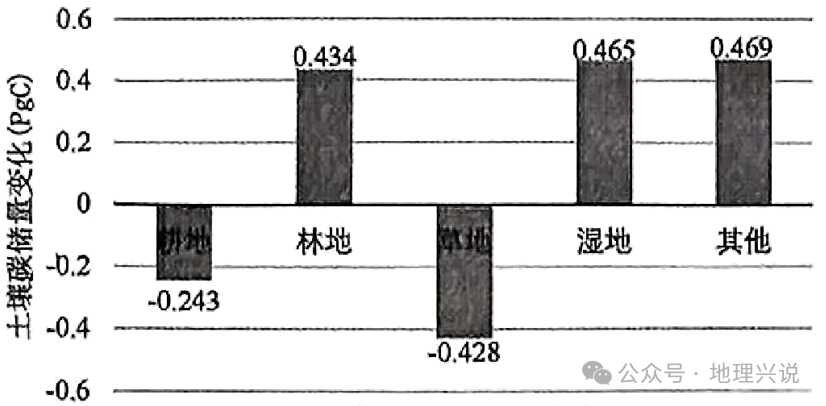 【解析】18.读图数据可知,林地土壤碳储量增加了0.434Pgc,湿地土壤碳储量增加了0.465Pgc,其他生态系统虽然增加值比湿地高,但没有具体数据,无法比较;草地、耕地增加值均为负值,因此湿地土壤碳储量增加量最多。故选D。