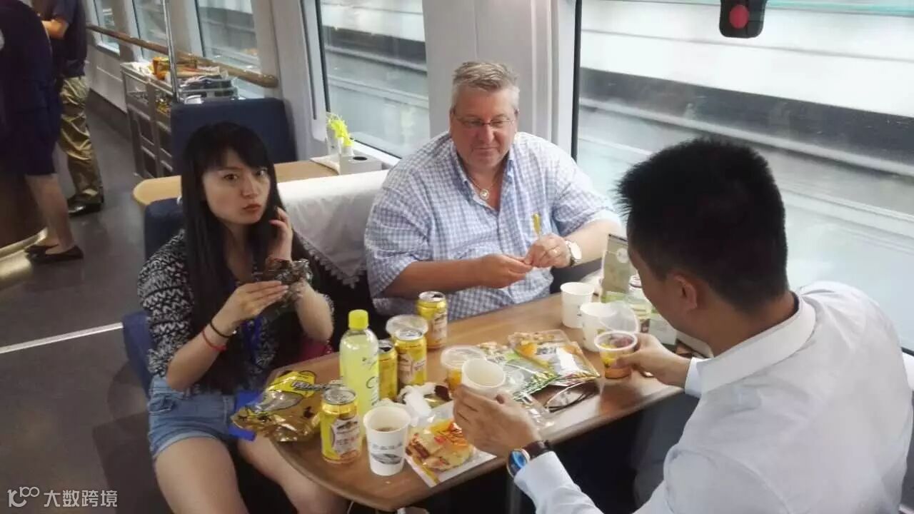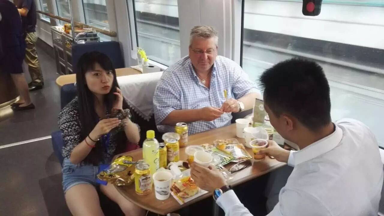 【高铁上,和客户,开怀畅饮,聊天,旅途不枯燥】