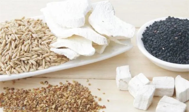 原料:淮山药10g 黑芝麻30g 黑苦荞20g 燕麦30g 葛根10g 糙米20g 老冰糖10g(根据情况加减)