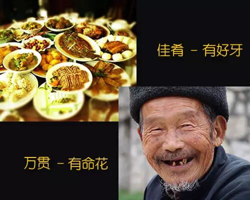 满桌佳肴,你得有好牙; 腰缠万贯, 你得有命花;