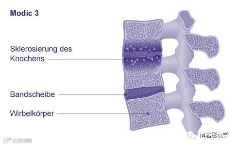 类似于椎间盘退变可使用 Pfirrmann 分类对其严重程度进行分级,Modic 改变的描述也需要同时考虑骨髓改变的分型和分级。