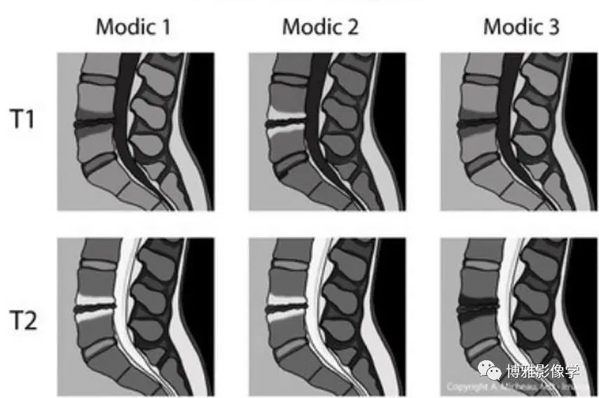 Modic 等对其分型标准及组织学变化进行了系统描述,将其分为 3 型: