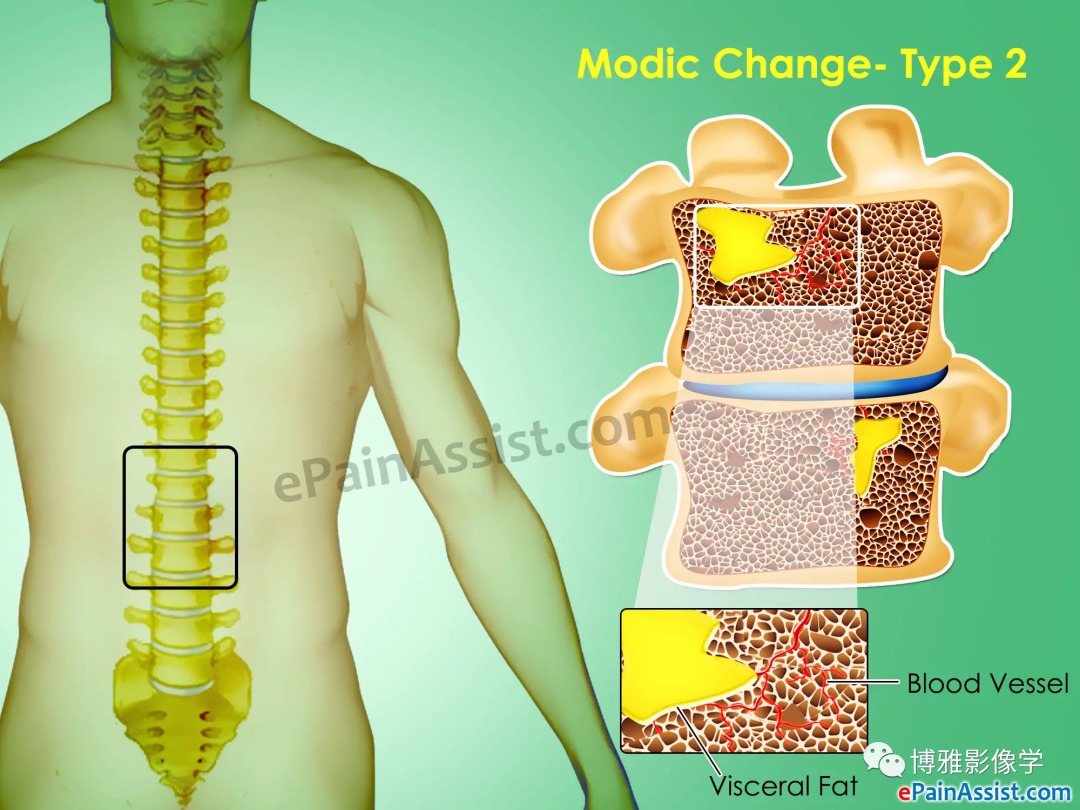 临床上,Modic 改变以 Ⅱ 型最多见,Ⅲ 型少见。