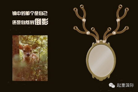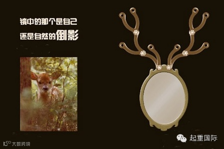 作品名称:鹿角镜子。看到推杆的时候,一下子就联想到了鹿角,将八个推杆用雪花状的零件连接,并喷上咖啡色的磨砂涂料,亦像鹿角,也像一个正在发芽的树枝。