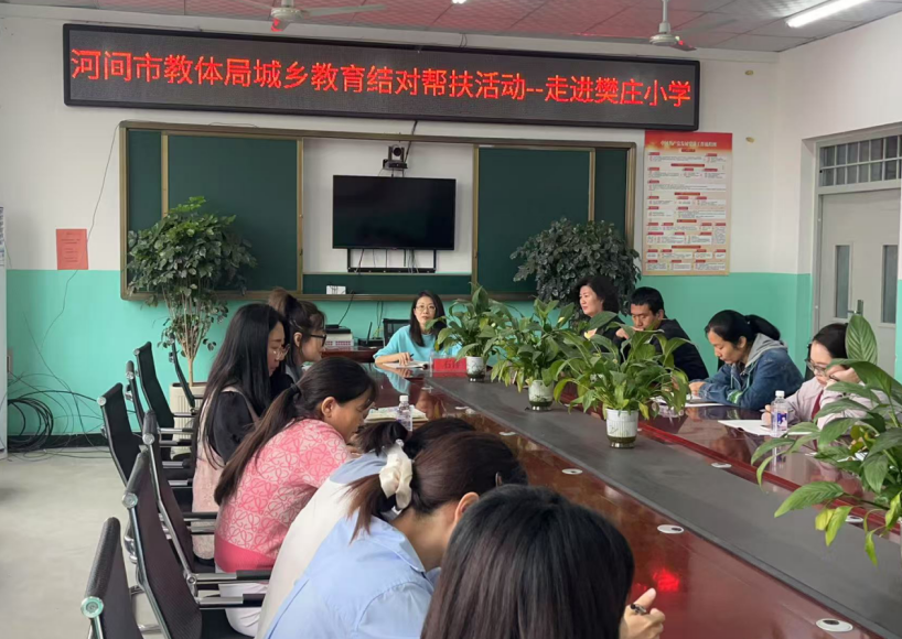 5月22日,教体局现代教育技术指导中心主任魏铁军、副主任石萍,河间市曙光小学教师李君、侯丽一行深入瀛州学区樊庄小学,开展送教帮扶教学研讨活动。瀛州学区校长陈永、副校长王翠敏及学区所有英语教师参加。