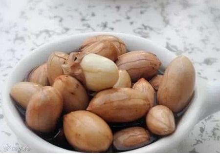 醋与花生的“天仙配”是科学的,这在于花生米的价值突出在含有人体所需要的不饱和脂肪酸,但毕竟脂类含量高、热量大、有油腻感。而醋中的多种有机酸恰是解腻又生香的,因此用醋浸泡花生米一周以上,每晚吃7~10粒,连吃一周为一个疗程,可降低血压,软化血管,减少胆固醇的堆积,但需注意的是,食用要适量,最多十几粒,吃后一定及时漱口,否则对牙齿不利。熟、生花生米均可。