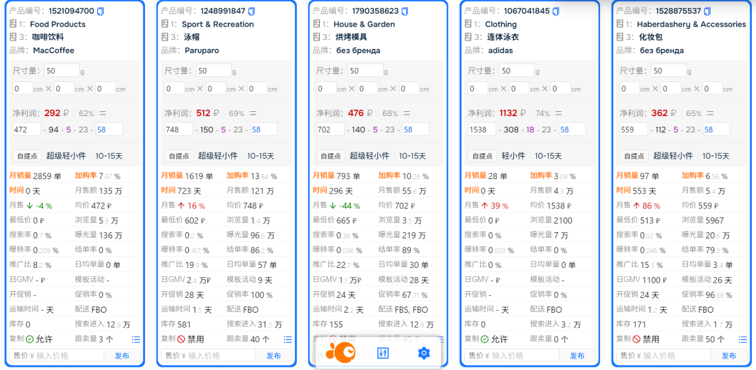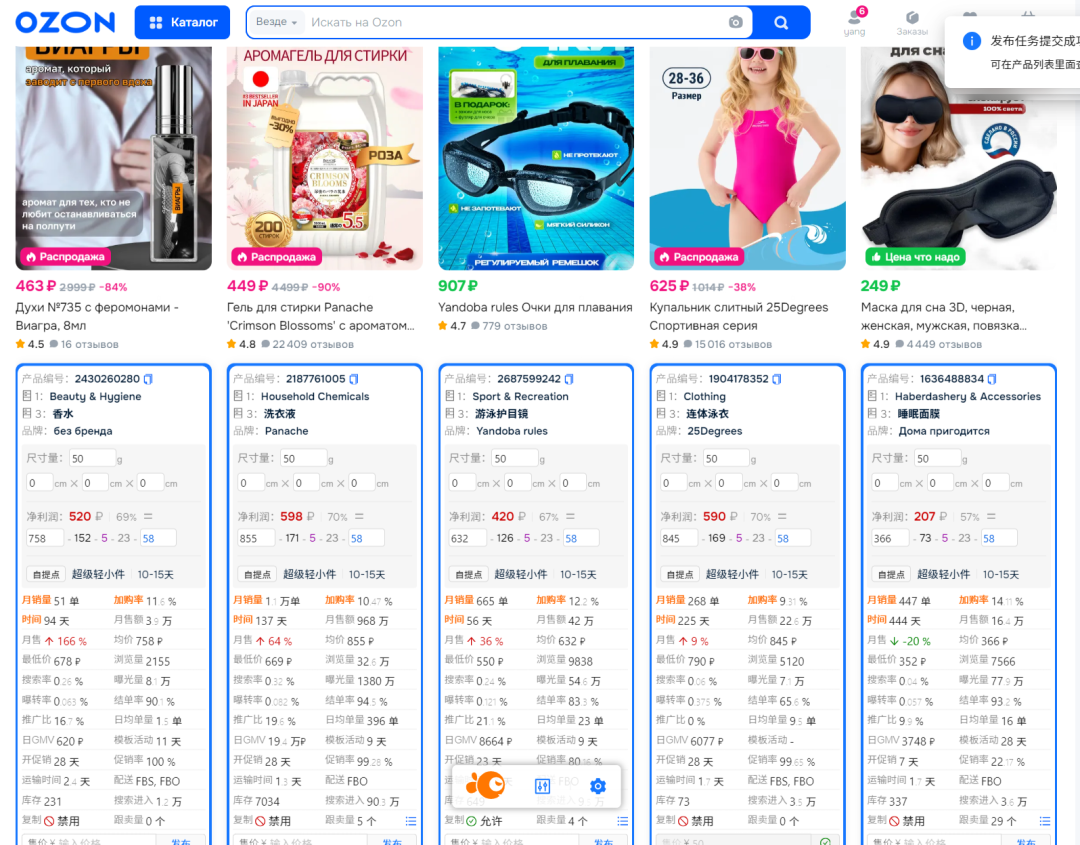 一位户外用品卖家使用Ozon专用搬单软件后,在跟卖折叠椅时,定价低于市场20%(1800卢布),结合FBS次日达服务,2个月内日均销量从10单增至80单,复购率达到15%。