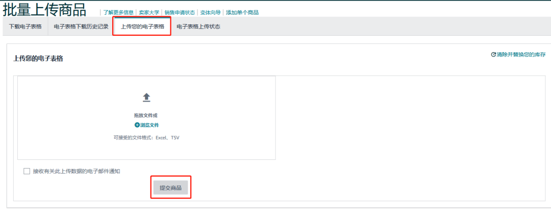 保存文件后,前往“上传您的电子表格”页面提交文件