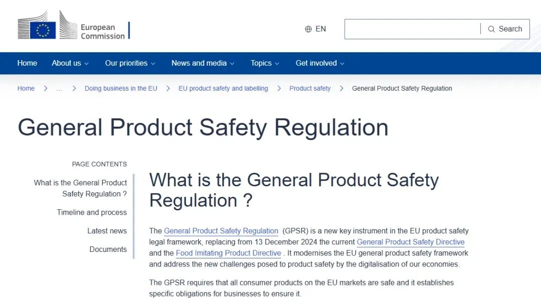 2024年12月13日,通用产品安全法规(GPSR) 正式生效。该法规要求所有在欧盟和北爱尔兰销售非食品类商品的卖家必须完成以下合规步骤: