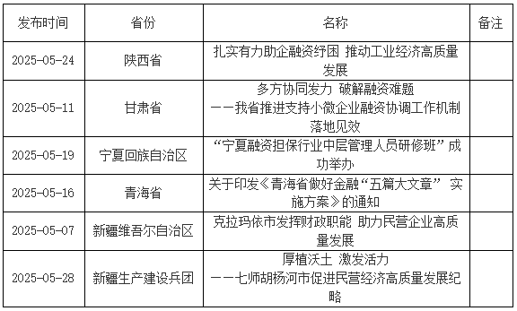 【西北五省联席会议机制通讯(第1期)】新疆、陕西分别出台促进融资担保行业高质量发展指导文件