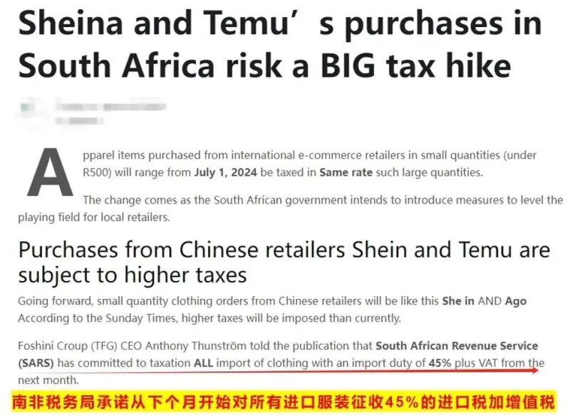 价格战一触即发:当南非拟对27美元以下进口服装加征45%关税,Temu宣称“公平竞争不依赖税收漏洞”,而本土平台Takealot则指责中国玩家“榨取南非价值却不贡献本地就业”。