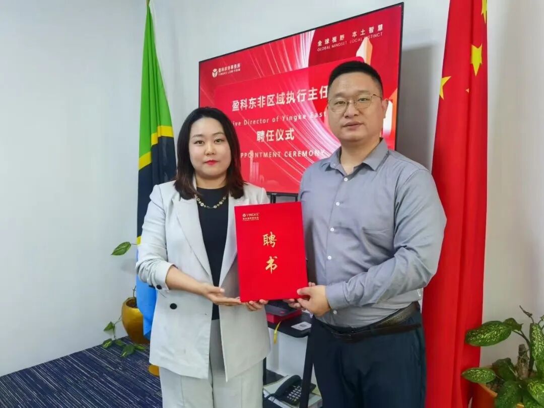 在与会人员的共同见证下,盈科总部正式聘任王振栋律师担任盈科非洲区域常务副主任、盈科西非区域执行主任,于学召担任盈科东非区域执行主任。盈科全球董事会董事,盈科非洲区域、盈科南非、坦桑尼亚执行主任郎瑞琦为2位主任颁发聘书。