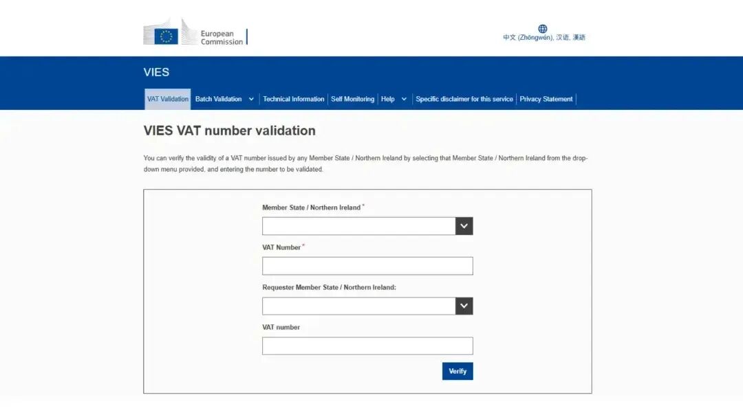 欧盟增值税信息交换系统(VIES)是唯一官方验证渠道