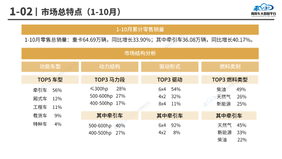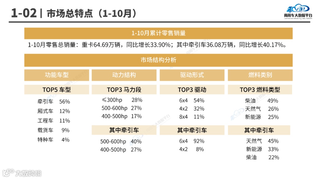 1-10月,重型卡车累计销量根据不同市场结构分析如下: