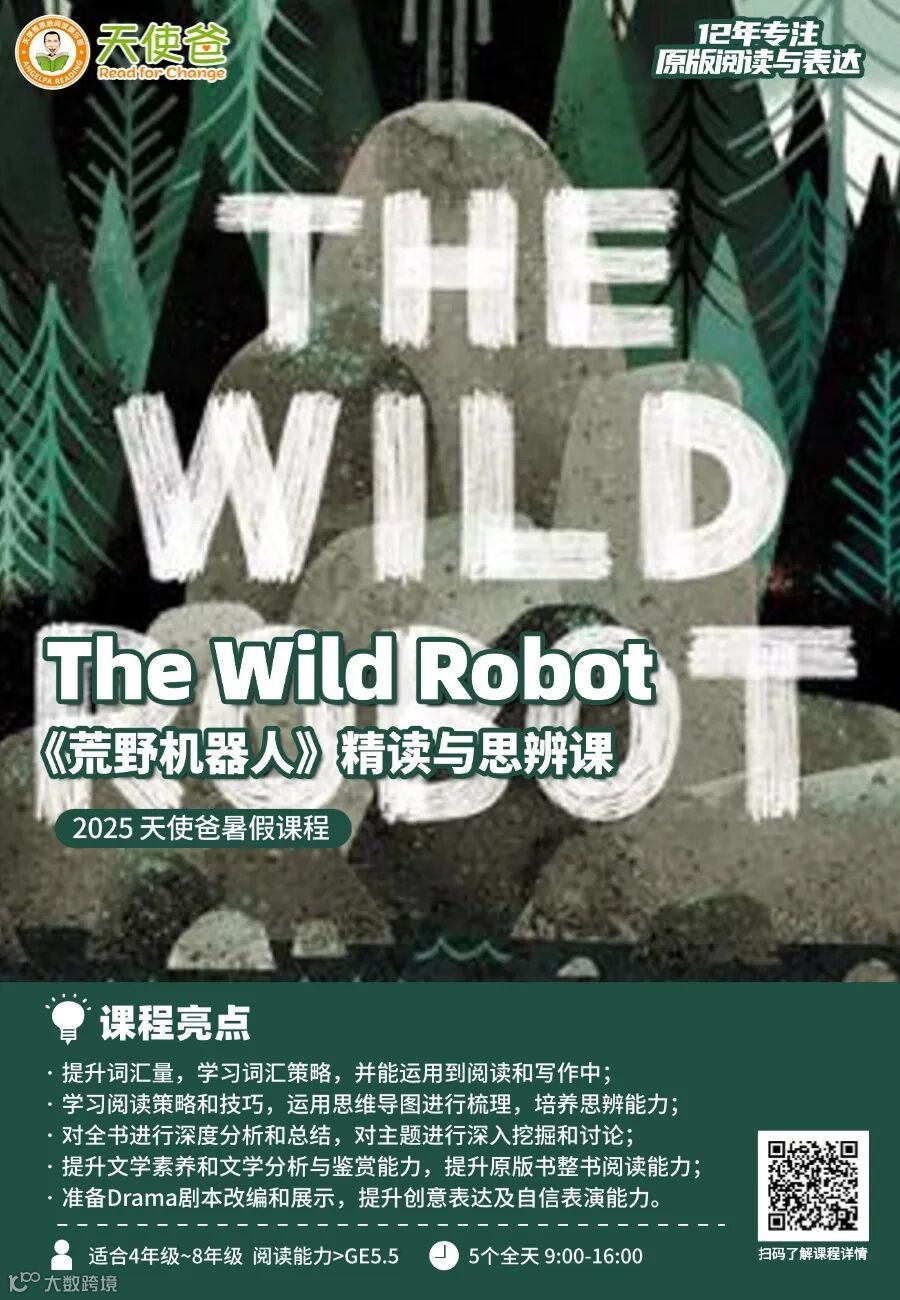 最后,福利来了!《荒野机器人》全套资源,点击在看并转发,进入“天使爸”微信公众号后台,输入“0418”获取链接哦!