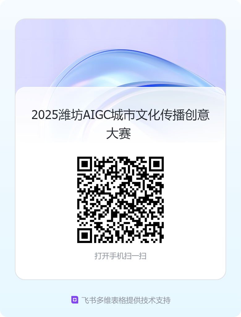 本次大赛面向全国范围内广大文化爱好者,无论您是单位、团体、组织还是个人,只要您对潍坊文化充满热情,对AIGC技术充满好奇,都可以报名参赛。