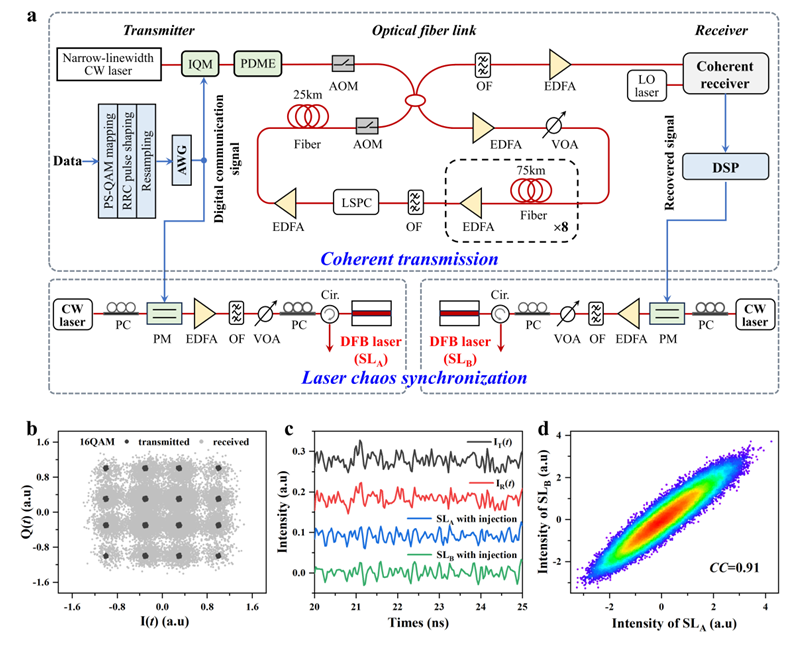 该研究成果以“Experimental demonstration of 8190-km long-haul semiconductor-laser chaos synchronization induced by digital optical communication signal”为题发表在《Light: Science & Applications》。