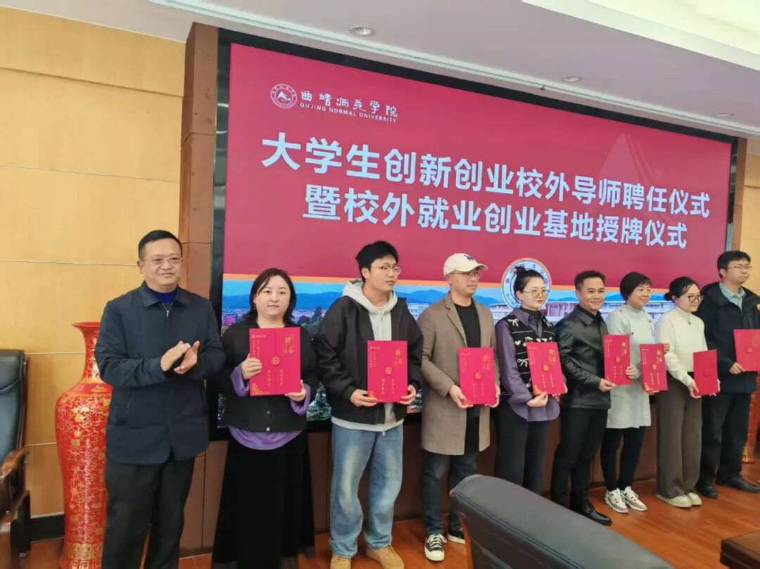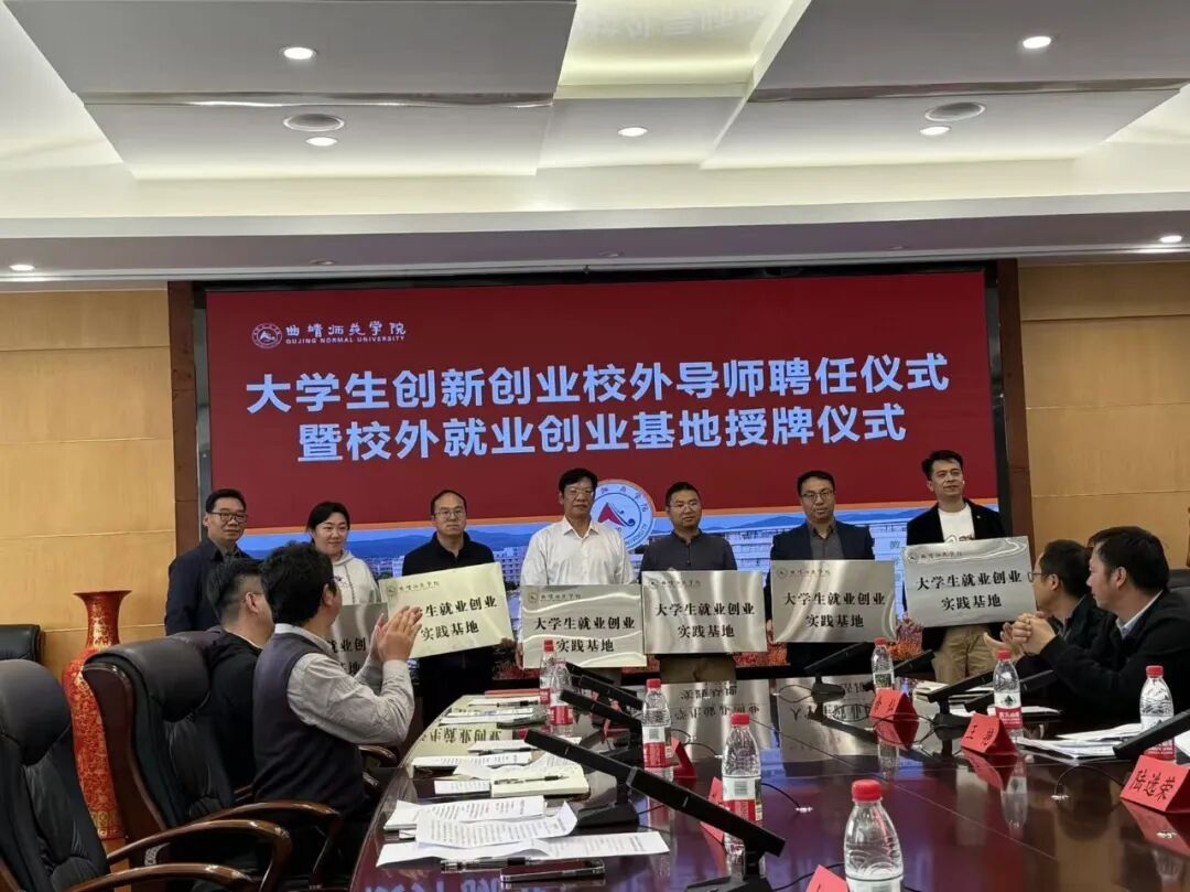 2025 年 11 月 7 日曲靖师范学院大学生创新创业校外导师聘任仪式暨校外就业创业基地揭牌仪式在第一会议室顺利举行。活动由学校党委委员、副校长杨学智主持,校领导、15 名拟签约企业代表及拟聘导师、校内二级学院分管创新创业工作领导及创业工作辅导员共同参会,搭建起校企协同育人的坚实桥梁。