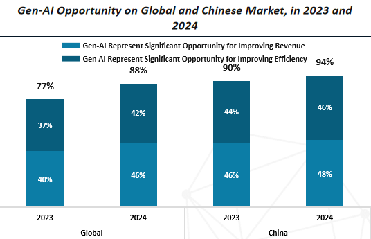 报告特别关注了人工智能(AI)对电子签名市场的影响。数据显示,2023至2024年间,全球和中国将生成式AI视为提升收入与效率关键机会的企业比例分别从37%增至42%、44%增至46%。生成式AI在自动起草、审查等功能上,与数字签名平台无缝集成,并在显著提升生物识别认证准确性等方面,为行业带来巨大机遇。