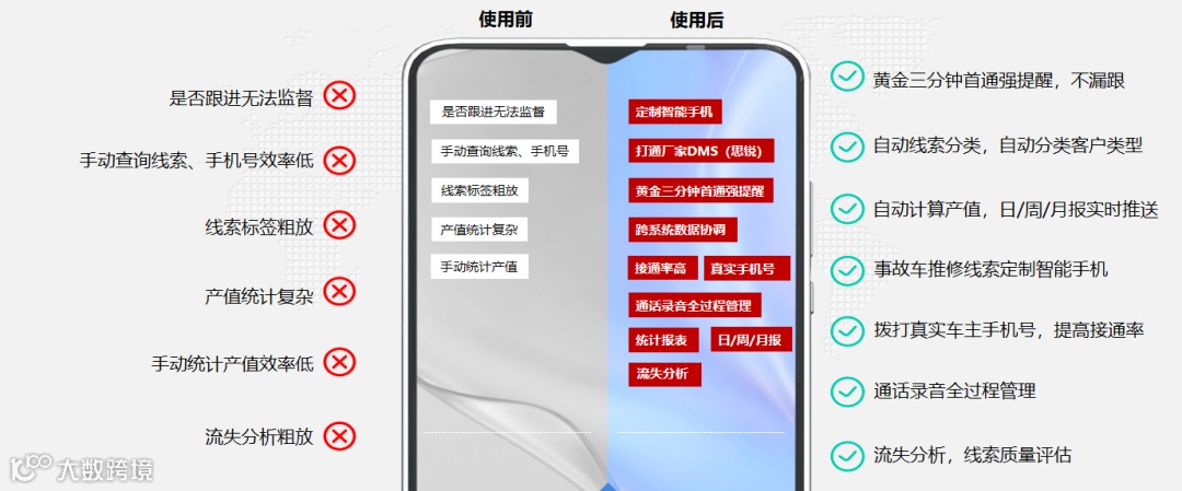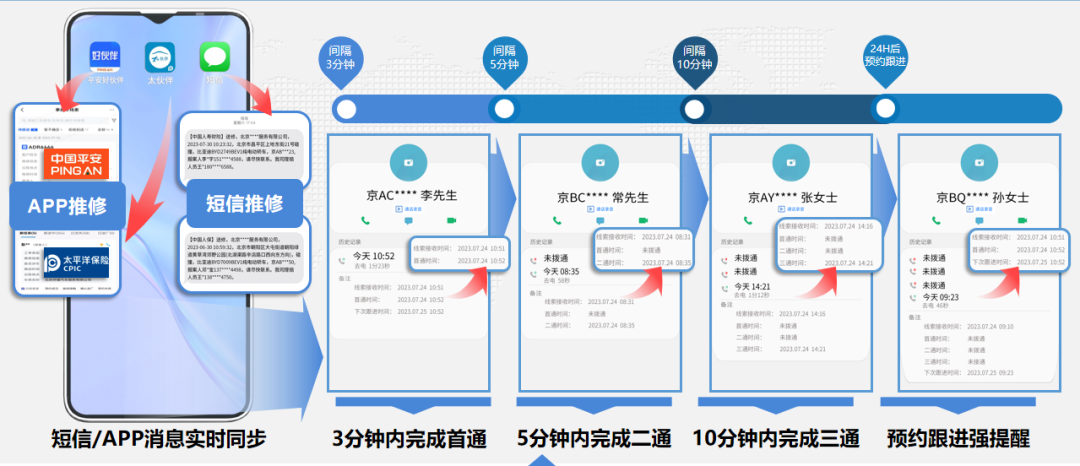 最近一位投资人向我们请教事故车业务提升之道,总结出两大核心方法,先分享立竿见影的短期策略 —— 快速部署留修宝系统。其核心秘诀在于狠抓3 分钟电话跟进率,这一指标直接决定事故车回厂率。从实际运营数据来看,白班跟进率需达到 95% 以上,夜班也要确保 89%,否则事故车流失风险极高。如今黄牛抢单愈发猖獗,报价不断攀升,部分客户甚至将跟进时间压缩至 1-2 分钟,稍有延迟,商机便转瞬即逝。