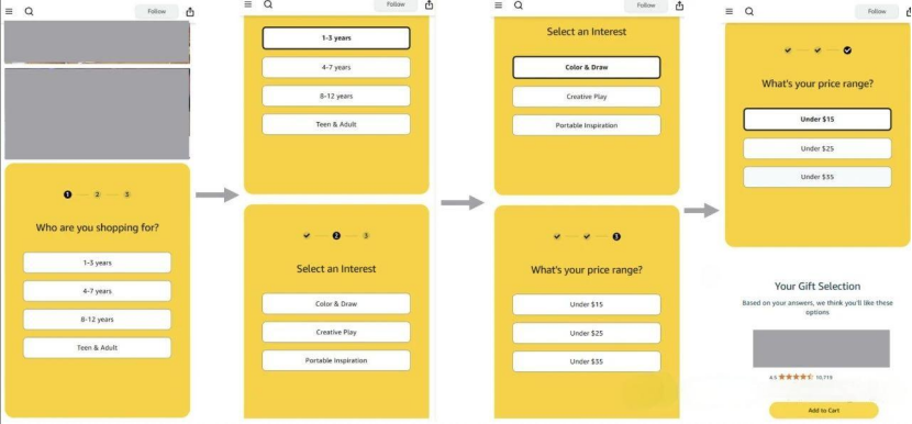 商品选择器的核心作用是帮助卖家提前设置一些关于产品特点、用途和使用场景的问题。当顾客进入品牌店铺时,只需简单回答这些问题,系统就会像贴心小助手一样,根据卖家设定的规则,马上推荐出最适合他们的商品。