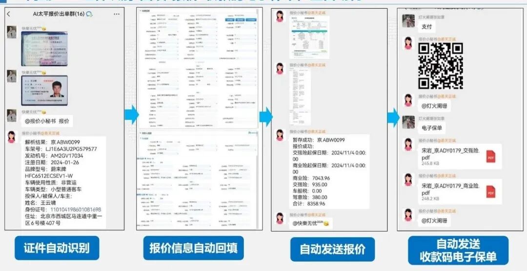 :借助企业微信对客户打标签,结合打通保司报价系统的车险机器人,以及与内部 CRM 系统联动,整合客户回厂优惠、保养套餐等资源,高效完成定保招揽与续保转化,尤其对短期续保、新保转续保及潜在转续保(在修不在保)客户的渗透率提升效果显著。 - 事故车模块