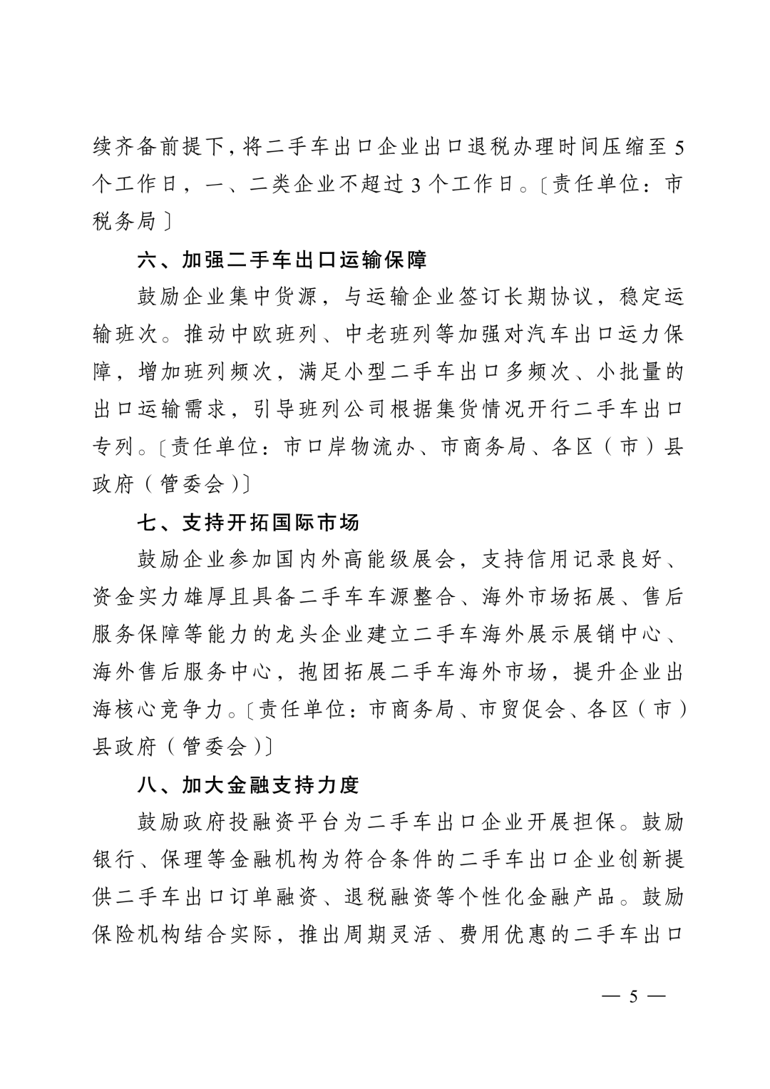 将二手车出口企业出口退税办理时间压缩至5个工作日