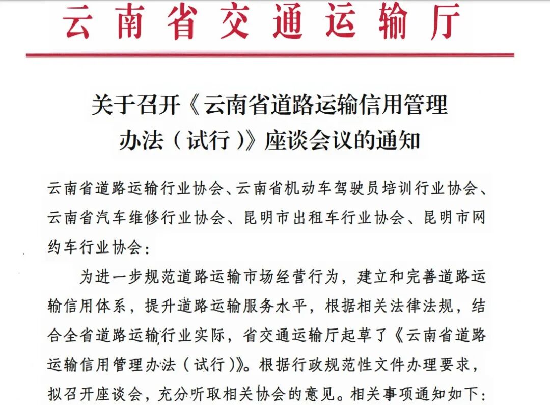 会议定于 2025 年 2 月 13 日(星期四)15:00,在昆明市环城西路 1 号省交通运输厅 5 楼会议室准时召开。会议议程高度聚焦,主要围绕深入探讨、广泛听取各行业协会对《云南省道路运输信用管理办法 (试行)》的意见与建议展开。