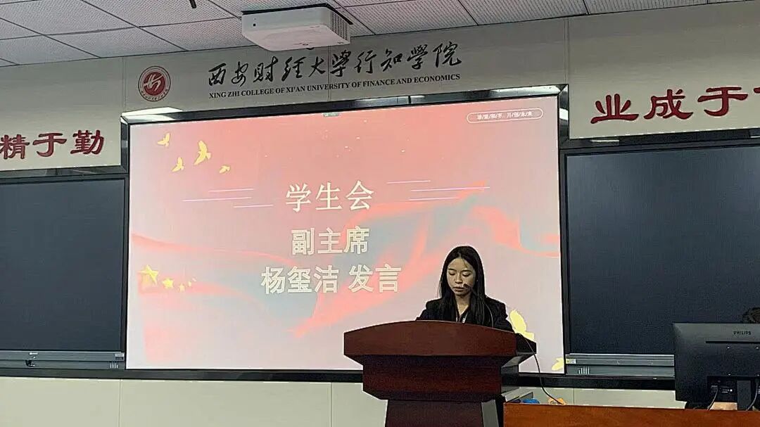 杨玺洁首先向即将卸任的各位学长学姐们表示衷心的感谢和敬意。学生会是连接学校和同学们的桥梁,是服务同学、促进交流的重要组织,将继续秉承“全心全意为同学服务”的宗旨,努力为大家创造更好的学习和生活环境。最后,她提到将加强学生会内部的建设,提高团队的凝聚力和工作效率,建立健全各项规章制度,规范学生会的工作流程,确保学生会的工作有序进行,更注重培养学生会成员的综合素质,提高大家的组织能力、沟通能力和服务意识,携手共进,共同创造一个更加美好的校园环境!