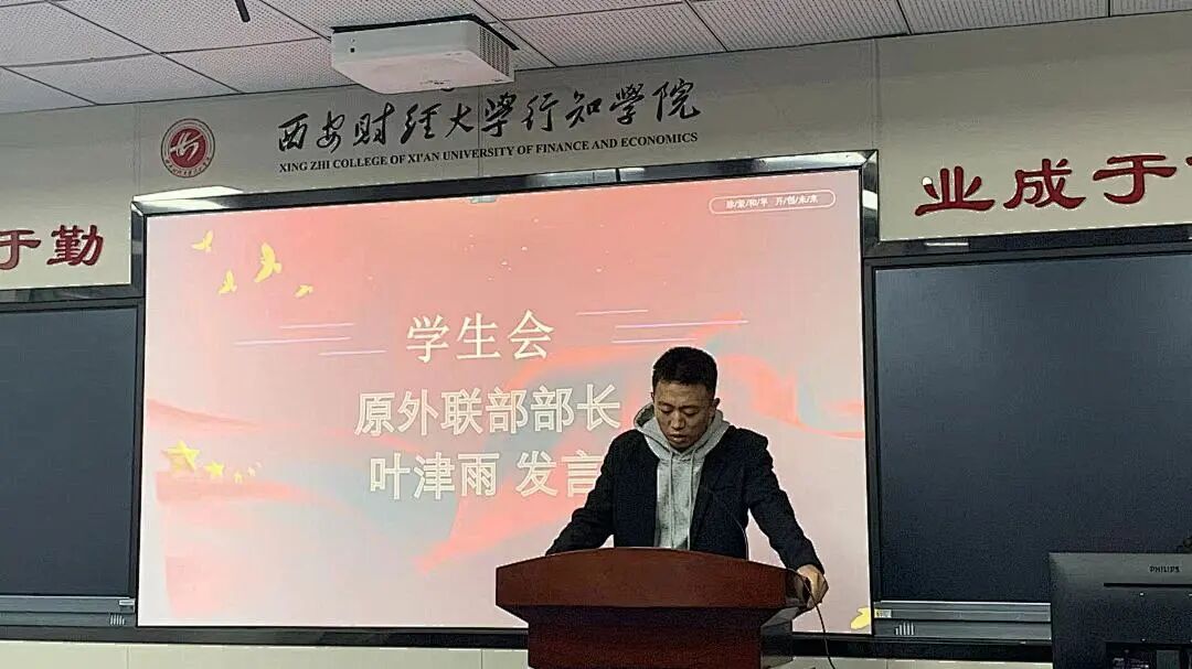 叶津雨首先表示要向所有在过去一年中为外联部付出努力的成员表示最深的敬意,并且对新一届学生会成员的到来表示热烈祝贺。过去的这一年中,外联部在大家的共同努力下,取得了一些成绩,成功举办了多项活动,为学院的各项活动提供了有力的支持。这些成绩的取得离不开每一位成员的辛勤付出和无私奉献。最后,他再次对所有支持他们的老师和同学表示最深的感谢,是大家的鼓励和支持让他们有勇气面对困难,有信心追求卓越。因为大家的每一份关心都是他们前进的动力。