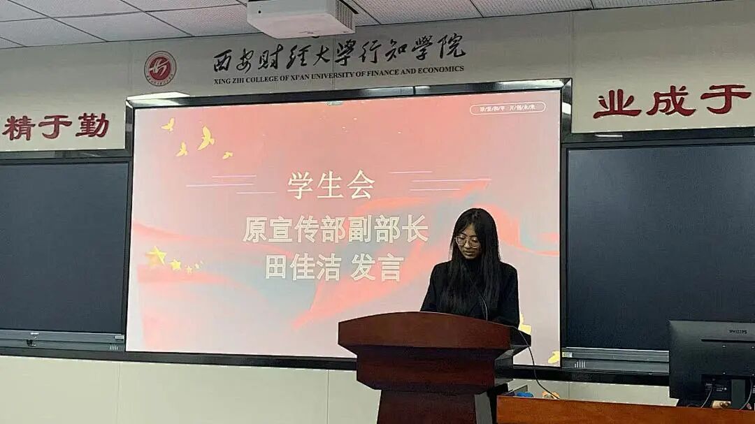 田佳洁回顾了宣传部过去工作的点滴:积极配合学院组织的各项工作,通过多种渠道、多样形式进行宣传与记录校园里的大事小情、活动赛事,用文字传递力量,并且精心策划话题、制作内容,让更多的人了解了我们的学校和组织。期待未来,新的宣传部成员们能够保持积极的学习态度,不断提升自己,积极参与到每一项宣传任务中,从实践中积累经验,为宣传部注入新的活力。最后,她感谢一直以来支持宣传部工作的领导、老师和同学们,希望大家继续努力,为学院的发展做出更大的贡献!