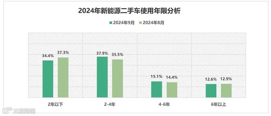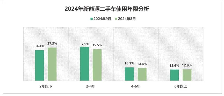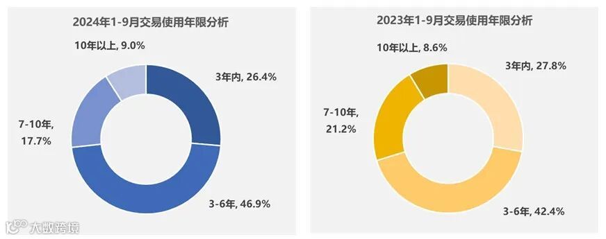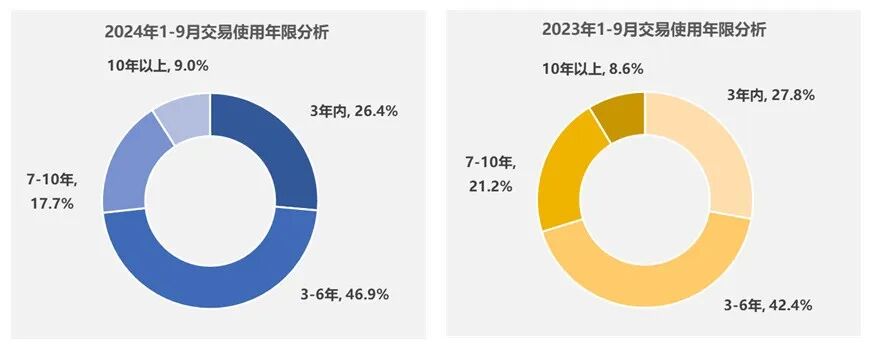 使用年限在3年内车型占比为26.4%,较去年同期下降了1.4个百分点;