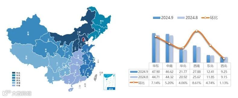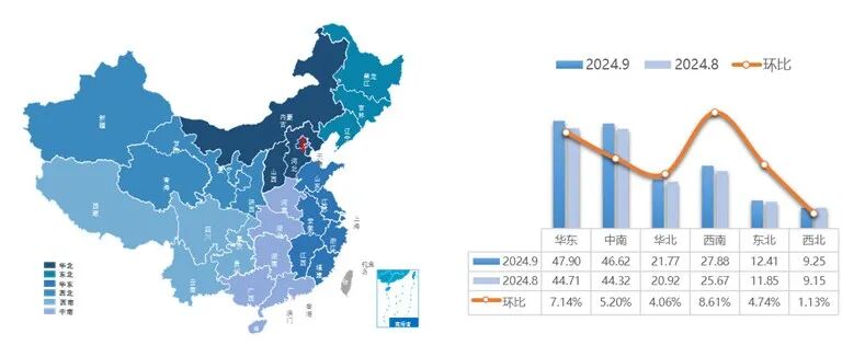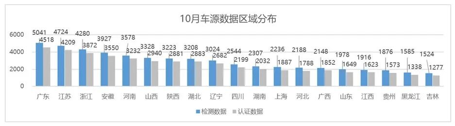 10月份相对于9月份各地基本保持平稳,其中广东、江苏、山西等地相对上月增长相对明显;
