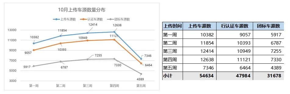 2024年10月,行认证共接收到上传车源数据54634台,较9月份增长约2%,本月经销商仍然延续9月份的“保守”状态; -