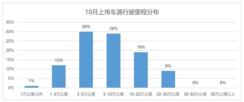本月,1-3万公里以内的“准新车”与上月持平,3-5万公里以内的“较新车” 则较上月减少约1%,5-10万公里的“性价比”车源与上月持平,10万公里以上的“老旧车”较上月增加了1%。