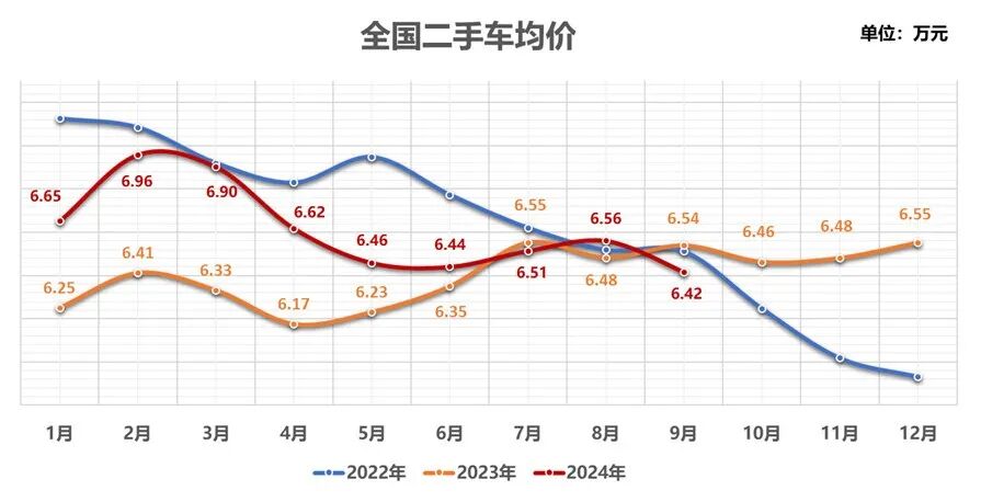 9月份,二手车交易均价为6.42万元,较8月份下降了0.14万元,较去年同期下降0.12万元。