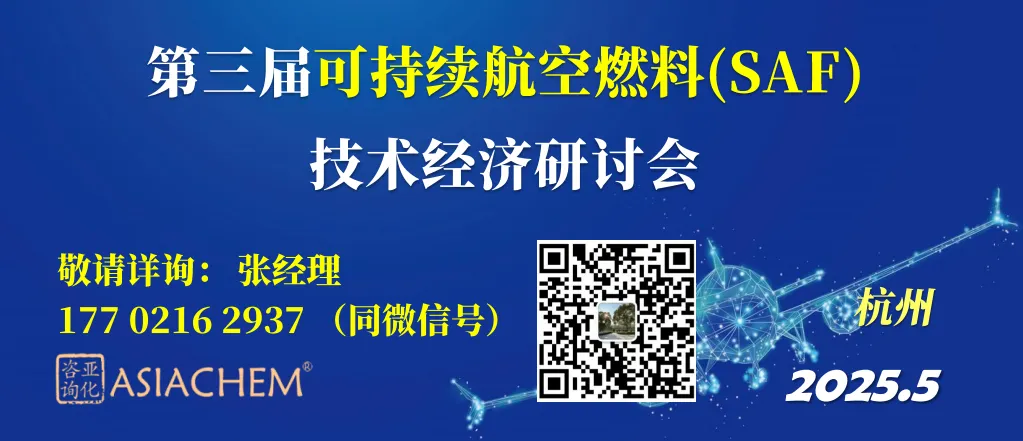 第三届可持续航空燃料(SAF)技术经济研讨会将于2025年5月在杭州召开,会议将探讨全球航空业脱碳趋势与SAF市场和供需展望,SAF成本降低潜力与竞争力分析,油脂加氢(HEFA)、木质纤维素制SAF、甲醇制SAF、乙醇制SAF、合成气F-T合成制SAF、生物质气化与绿电、绿氢耦合制SAF、CO2和绿氢直接合成SAF技术,航空公司、飞机制造商和航发制造商的SAF应用经验,中国SAF出口途径与出口潜力等。